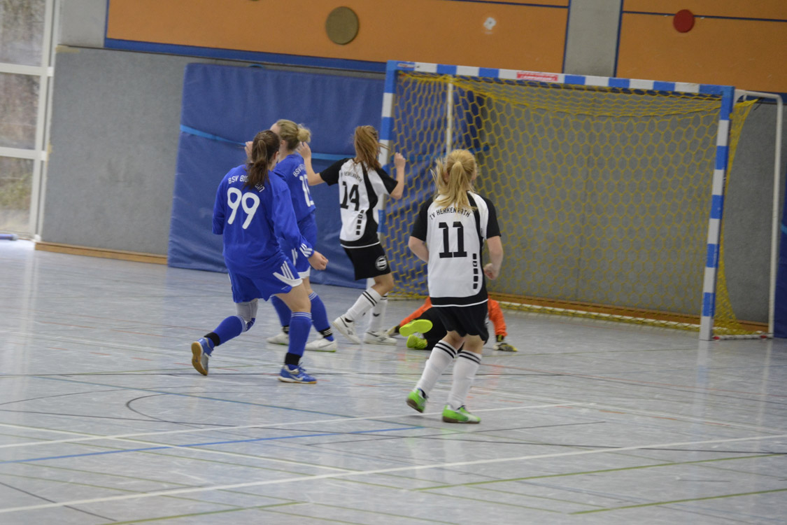 Der Gegner der ersten Partie des heutigen Tages kam aus Herkenrath und war mit insgesamt vier (!) Trainern angereist. Nach einem spannenden Spiel, in dem die Rheinisch-Bergischen in den ersten Minuten die bessere Mannschaft waren, stand es am Ende 0:0 – auch dank einer grandiosen Torhüterleistung von Eugenie, die allerdings unmittelbar nach dem Spiel das erste Mal über Schwindel klagte.