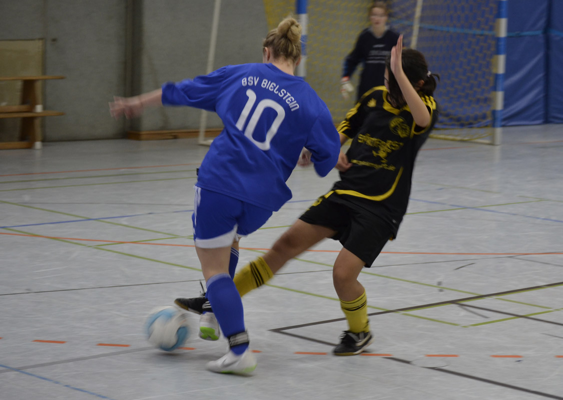 Spiel 4 musste also gewonnen werden, um den Einzug in die Endrunde der Hallenkreismeisterschaft perfekt zu machen. Das tat die Mannschaft dann einfach. Mit einem wiederum verdienten 1:0 Sieg (Treffer: Sarah, Vorlage: Annalena) setzte man sich nach 12 Minuten gegen den FFC Bergisch Gladbach durch.