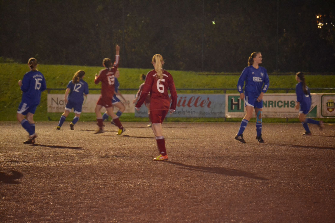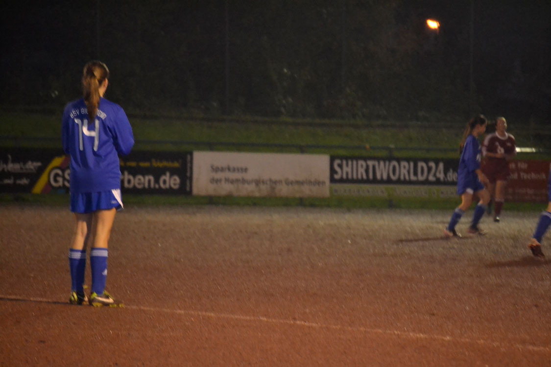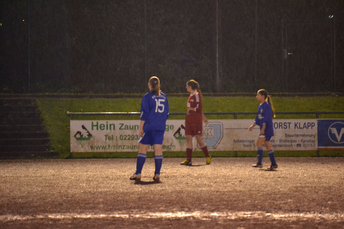 Bei schlimmstem Bielsteiner Wetter begannen unsere Mädchen gut: Schon nach wenigen Spielminuten hatte man die erste gute Möglichkeit, als man mit einem Freistoß aus 25 Metern nur die Latte traf. Auch danach war man überlegen, ohne allerdings spielerisch glänzen zu können. Das 1:0 war dennoch verdient: nach einem weiten Einwurf von Vivian düpierte Annalena ihre Gegenspielerin und ließ der Torhüterin mit ihrem Außenrist-Schuss keine Möglichkeit. Das Tor gab wenig Sicherheit, im Gegenteil: die Mannschaft agierte über weite Strecken der ersten Halbzeit insgesamt zu hektisch und zerfahren. Weil der Gegner aber zu schwach für unsere starke Abwehr war, brannte hinten nichts an. Einen offensiven Akzent konnte man noch setzen und der war sehr stark: nach einem schönen Pass in den Lauf ging Annalena in eine 1-gegen-1-Situation, setzte sich gut durch und traf mit einem schönen Schuss in den linken Giebel zur 2:0 Pausenführung.