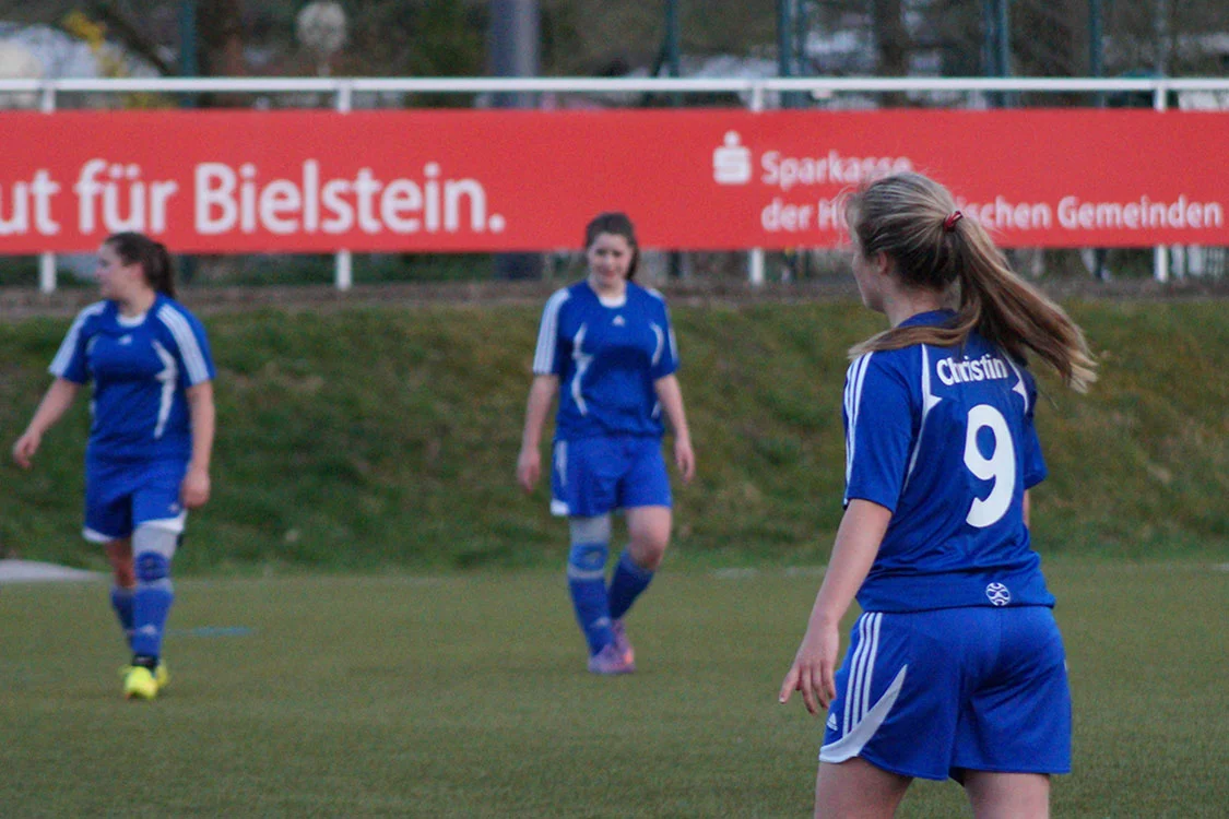 In der Halbzeit forderten die Trainer ihre Mannschaft auf, weiterhin gut zu stehen und aus einer gesicherten Defensive heraus zu eigenen Torchancen zu kommen. Die Mädchen beherzigten die Anweisungen des Trainerteams und kombinierten sich in der Folge zu einigen schönen Spielzügen, die allerdings allesamt von den gegnerischen Abwehrreihen geblockt werden konnten. Schließlich wollten auch die Gäste noch einmal ihr fußballerisches Potenzial aufblitzen lassen und kombinierten in der Vorwärtsbewegung ähnlich gut miteinander wie es zuvor die Bielsteinerinnen taten. So entwickelte sich in Halbzeit 2 ein munteres Spiel, in dem die zahlreichen Zuschauer viele wechselnde Ballstaffetten zu sehen bekamen. Einzig Tore blieben zunächst noch Mangelware. Das änderte sich erst in der 77. Minute wieder: als viele schon mit dem Spiel abgeschlossen hatten, nahmen sich Christin Siegmund und Annalena Müllenmeister noch einmal ein Herz und erzielten durch eine schöne Kombination das letztlich verdiente 3:0. In der Schlussphase der Partie beschränkten sich die Bielsteinerinnen in Erwartung des Schlusspfiffes darauf, den Ball souverän und kontrolliert zu Ende zu spielen. Nach etwa 80 Minuten pfiff der gute Schiedsrichter die Partie dann schließlich ab.