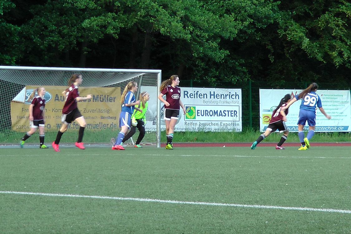 Im Nachholspiel gegen den FC Bensberg gewinnen unsere U17 Mädchen nach einem spannenden Spiel verdient mit 5:2. Christin Siegmund (2) und Annalena Müllenmeister (3) treffen für die Spielgemeinschaft Bielstein/Wiehl, deren Freude über den Sieg durch einen Krankenwageneinsatz unmittelbar nach Spielschluss überschattet wird.