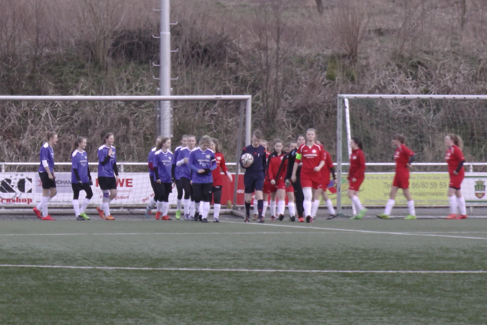 In der zweiten Hälfte setzten unsere Mädchen die gegnerische Abwehr immer mehr unter Druck und kamen so immer wieder zu guten Chancen, darunter ein Freistoß aus aussichtsreicher Position. Christin probierte es mit einem Schlenzer, verfehlte das Tor aber knapp. Der Freistoß war ein Weckruf für die Frielingsdorferinnen, die nun vermehrt auf den Ausgleich drückten und dadurch etwas mehr vom Spiel hatten. Vor allem nach Ecken wurden die Gastgeberinnen gefährlich – Lea, Vanessa und Eugenie mussten in drei Situationen viel riskieren. Erst nach einer guten Stunde konnten sich unsere Mädchen wieder befreien – was erneut sofort belohnt wurde. Nach einem Einwurf von Isa brachte Anna den Ball gefährlich Richtung Tor. Der Ball wurde immer länger, titschte vor der Torhüterin noch einmal gefährlich auf und landete schließlich zum 2:0 im Tor (an dieser Stelle Glückwunsch zum ersten Tor). Frielingsdorf versuchte, nun nochmals die letzten Kräfte zu mobilisieren, um doch noch irgendwie zum Erfolg zu kommen. Unsere Mädchen verteidigten aber weiterhin bravourös und ließen überhaupt nichts mehr zu. Daran änderte auch die Verletzung von Anna (an dieser Stelle nochmals gute Besserung) kurz vor Schluss nichts mehr, die zur Folge hatte, dass man das Spiel in Unterzahl beenden musste. Im Gegenteil: beinahe hätte man die Führung sogar noch ausbauen können. Erneut war es die heute etwas offensiver agierende Leo, die nach einem Konter mit ihrem Schuss scheiterte. Kurze Zeit später pfiff der Schiedsrichter die Partie dann ab.