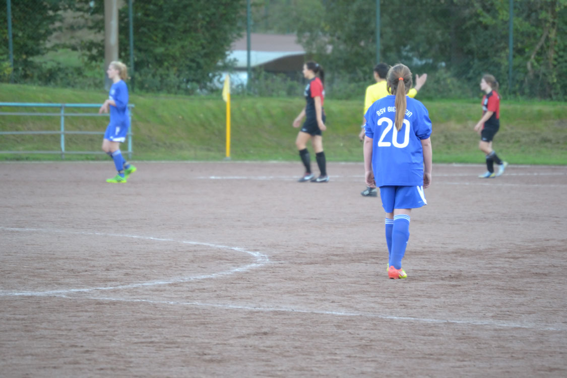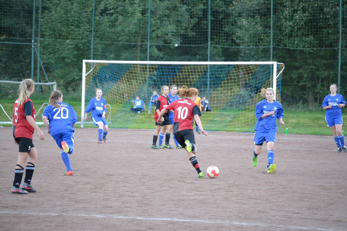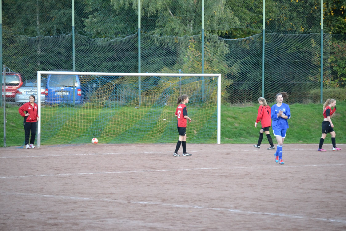 In gewohnt akribischer Art und Weise stellte Trainer Carsten Fricke seine Mannschaft heute zusammen. Schon lange vor dem Spiel hatte er seinen Spielerinnen seinen Plan mitgeteilt, die Gegnerinnen frühzeitig zu stellen, um so den Spielfluss zu unterbrechen. Dazu bekam Mara im Vorfeld die Sonderaufgabe, die oftmals stark aufspielende Paulina Sievers zu decken und ihr so möglichst wenige Freiräume zu geben. Der Plan funktionierte: Obwohl Mittelfeldmotor Jacky privat verhindert fehlte und die etatmäßige Stürmerin Sarah zunächst verletzt auf der Bank Platz nehmen musste, lieferten die Mädchen ihren Gegnerinnen in der ersten Halbzeit einen richtig guten Fight. Zwar hatte man selber kaum Möglichkeiten, Chancen für Dieringhausen hatten aber ebenfalls Seltenheitswert. Falls dann doch mal ein Ball durchkam, war die bärenstarke Eule zur Stelle und fing die Kugel ab. Mit einem nicht unverdienten 0:0 ging es schließlich in die Pause.