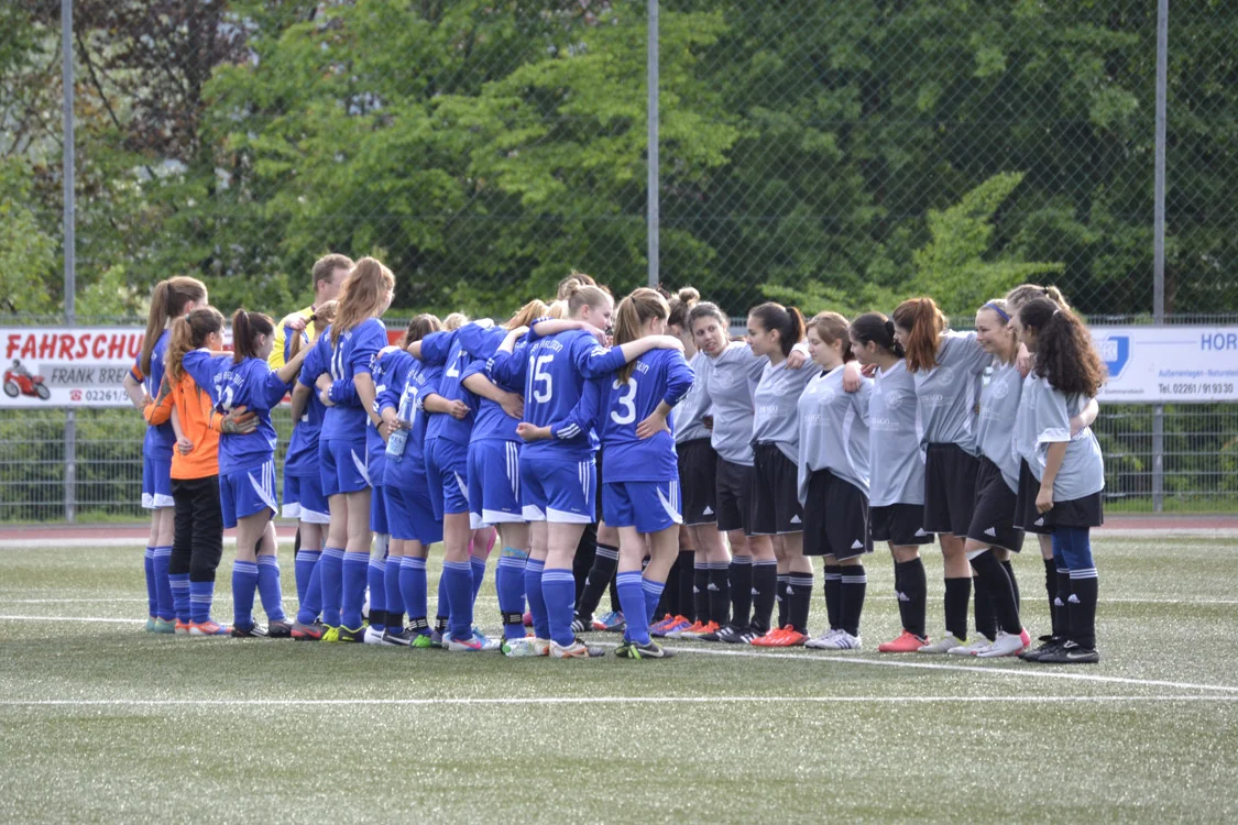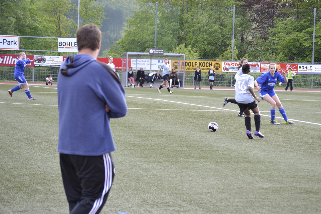 Durch den Sieg sind unsere Mädchen erstmals in dieser Saison auf den zweiten Tabellenplatz in der Bezirksliga vorgerückt. Die Freude darüber ist dennoch gedämpft, da sich die dreifache Torschützin des heutigen Tages Jacy nach einem Foulspiel der Derschlagerinnen schwerer verletzt zu haben scheint. An dieser Stelle wünschen wir Jacy gute Besserung und der Mannschaft für das letzte Spiel am 24. Mai in Morsbach viel Erfolg.