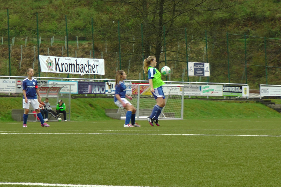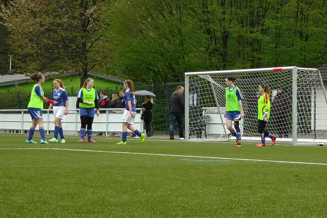 Der Start in die Partie hätte nicht schlechter verlaufen können: so lagen die Gäste aus Biesfeld nach nur 13 Minuten bereits mit 2:0 in Führung. Unsere Mädchen wirkten verunsichert und ängstlich, konnten sich im weiteren Verlauf aber immerhin etwas steigern. Gerade in dem Moment, als man etwas besser ins Spiel zu kommen schien und selbst einige gute Möglichkeiten herausspielen konnte, schlugen die Gäste dann erneut zu: aus der Distanz war eine Biesfelder Spielerin erfolgreich. Kurz darauf war Halbzeit.