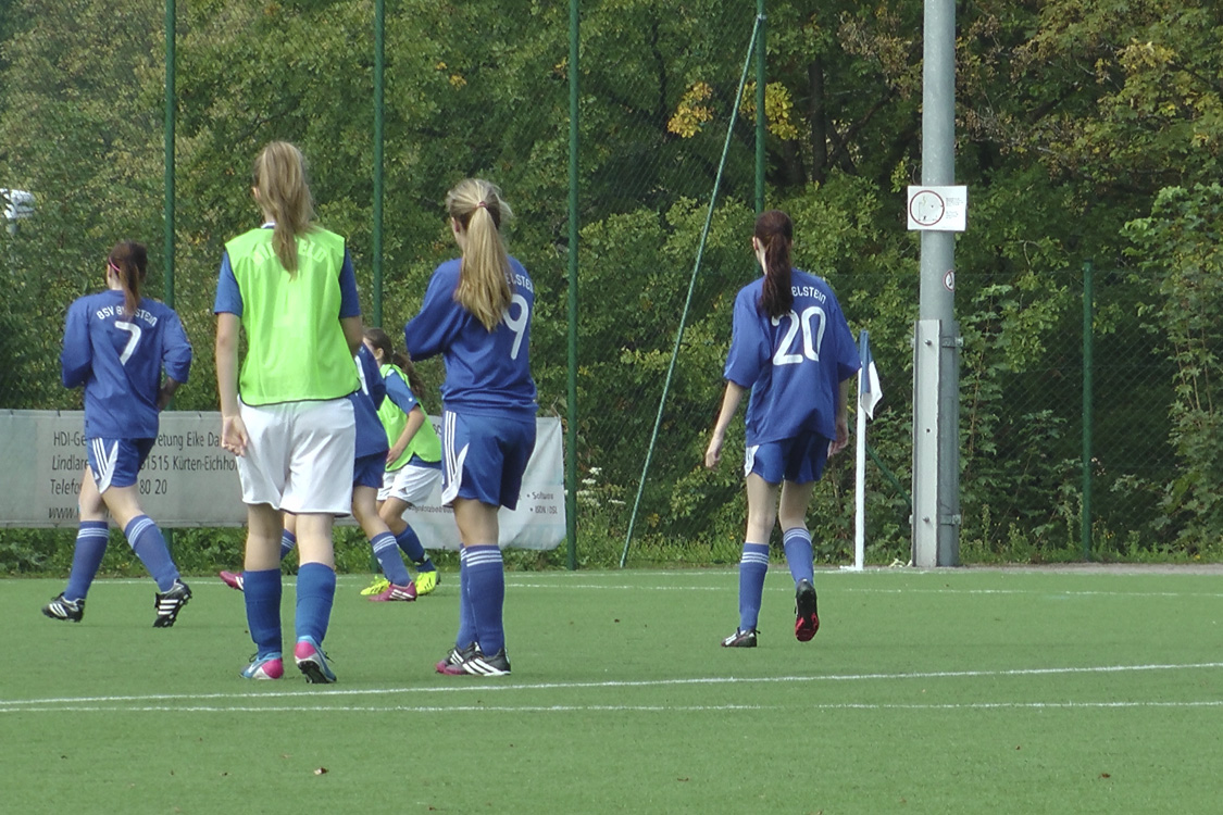 In der Pause forderten die Trainer ihre Mannschaft dazu auf, weiterhin konzentriert zu Werke zu gehen. Die Mannschaft folgte dieser Anweisung, rückte wie schon in Halbzeit 1 nicht von ihrem Spielplan ab und spielte ihren Stiefel am heutigen Tage insgesamt sehr solide herunter. Weil sich einige Spielerinnen in Halbzeit 2 sogar noch um einige Prozentpunkte steigern konnten und die Biesfelderinnen gleichzeitig nicht wirklich müder wurden, ergab sich ein spannender Schlagabtausch zwischen beiden Mannschaften. Die größeren Chancen hatten dabei die Gäste aus Bielstein, die mehrfach gefährlich vor dem Tor der starken Biesfelder Torhüterin auftauchten, letztlich aber immer an deren starken Reaktionen oder sich selbst scheiterten. Als sich der Großteil der Zuschauer bereits mit einem Unentschieden zufrieden gegeben hatte, kam die trotz einer heftigen Erkältung auflaufende Stürmerin Christin noch ein letztes Mal an den Ball. Mit einer echten Energieleistung setzte sie sich gegen zwei Gegenspielerin durch und schob den Ball zum viel umjubelten Siegtreffer an der Torhüterin vorbei ins Tor. Einen Anstoß sowie einen Biesfelder Freistoß später war dann Schluss.