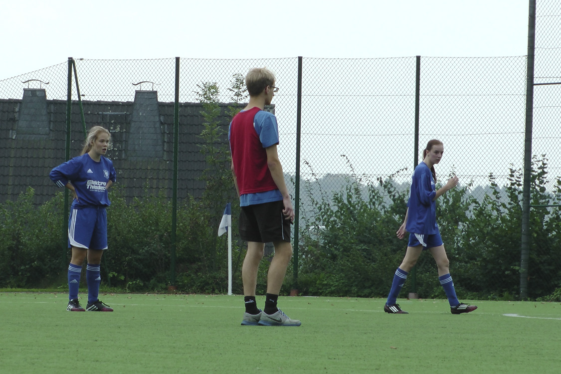 Die Biesfelderinnen legten gut los und hatten zu Beginn der Partie etwas mehr vom Spiel. Dann aber verletzte sich Biesfelds vermeintlich begabteste Spielerin bei einem Pressschlag und musste verletzt den Platz verlassen. Weil beide Mannschaften am heutigen Tage ohne Auswechselspielerinnen angereist waren, ergab sich dadurch eine rund 60-minütige Überzahl für die Mädels, die in der Folge in ihren Aktionen deutlich konzentrierter und klarer zu Werke gingen. Die größte Chance in Halbzeit 1 hatte Christin, die nach feinem Pass von Lena freistehend an der herausstürmenden Torhüterin scheiterte. Kurz darauf war Halbzeit.