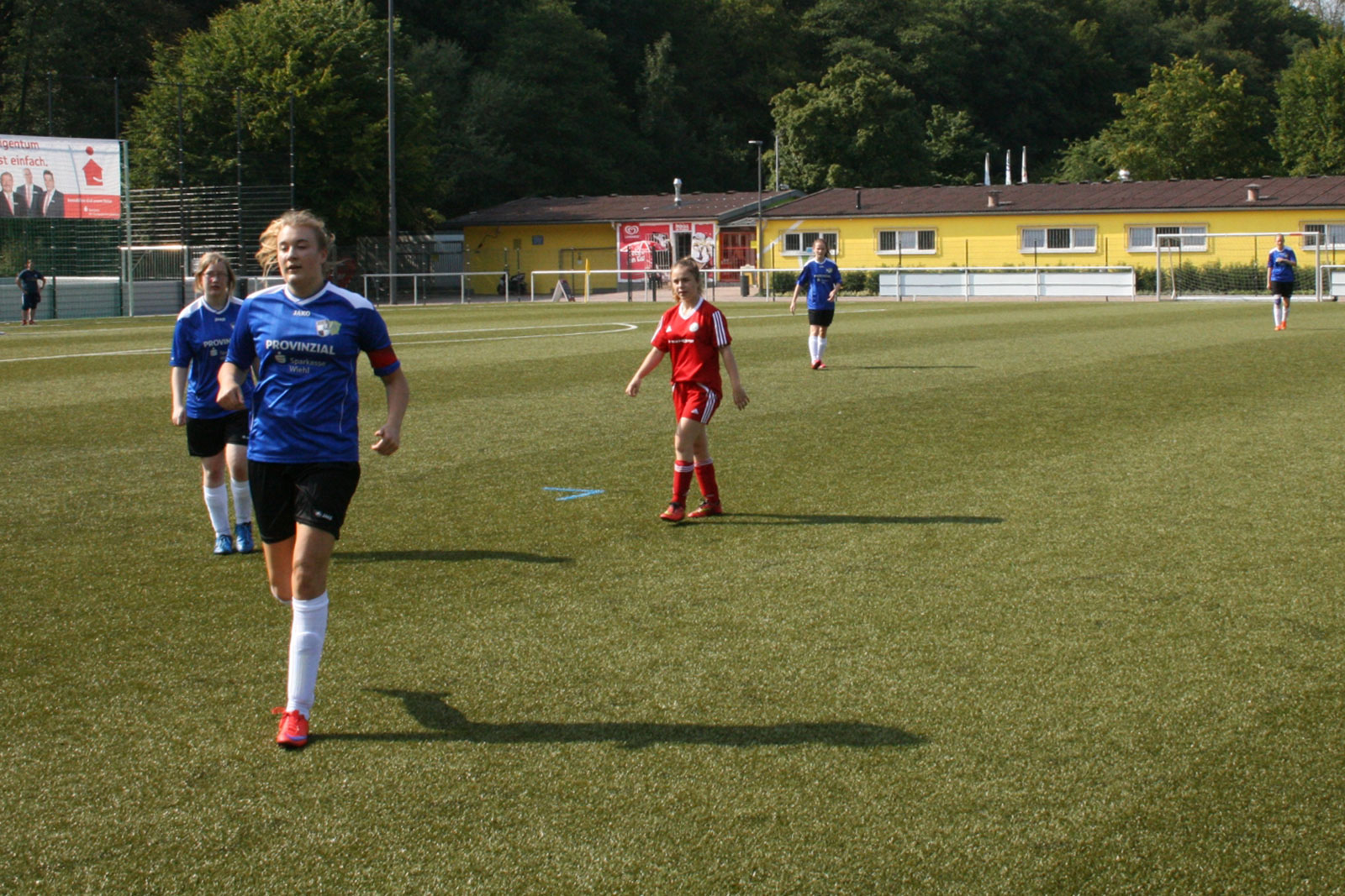 In der Halbzeit gaben die Trainer der Mannschaft die Aufgabe mit, sich wieder ordentlicher zu verkaufen und noch einmal alles zu geben. Das zeigte Wirkung: so bot sich den Zuschauern im zweiten Durchgang ein komplett anderes Bild. Jetzt war es unsere Mannschaft, die das Spiel machte. Nach einer Ecke traf man nur den Pfosten. Der Abpraller rollte aber noch vor dem Tor her, wo Mirijam schnell reagierte und den Ball über die Linie drückte. Die Mannschaft spielte auch in der Folge weiter munter nach vorne und war nun endlich auch in den Zweikämpfen präsent. So fing Isabelle ein Ball im Mittelfeld ab und machte sich auf den Weg. Dabei umkurvte sie zunächst noch den gegnerischen Torhüter und schob den Ball schließlich ins leere Tor zum 2:6 Anschlusstreffer. Jetzt wollte es unsere Mannschaft noch einmal wissen. Nach einer schönen Kombination über Außen brachte Isabelle den Ball gefährlich vor das Tor, wo Gina die Kugel nur noch einzuschieben brauchte. Es waren noch genügend Chancen da, um weitere Tore zu erzielen. Leider blieben die Möglichkeiten allesamt ungenutzt.