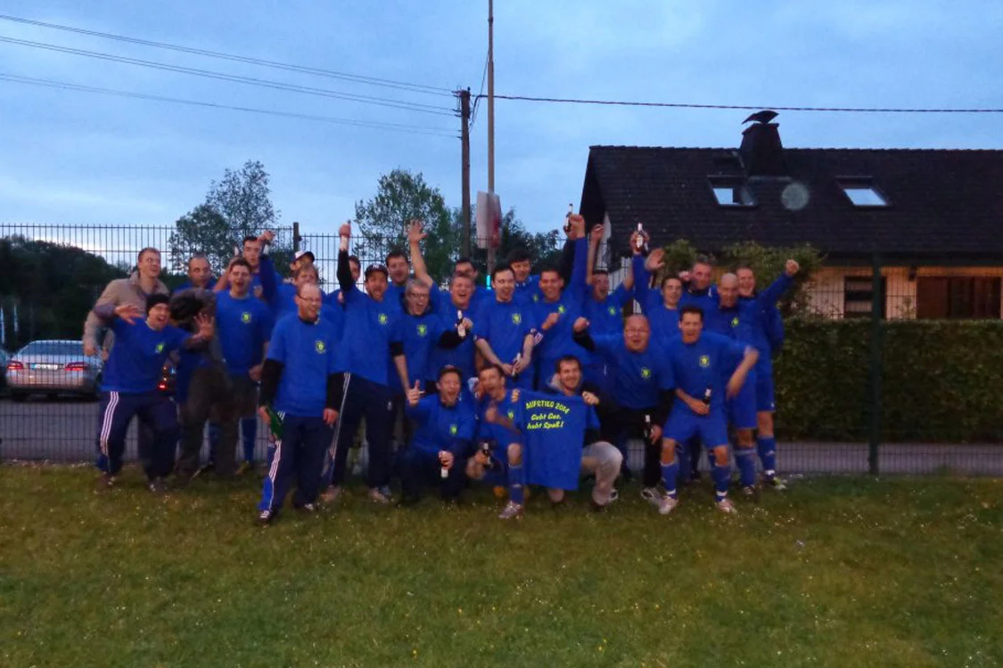 Und dieser Aufstieg sollte auch gebührend gefeiert werden: Nach Spielende gab es nicht nur reichlich Bier- und Sektduschen für die Trainer, auch viele Spieler konnten sich dem kalten Nass nicht entziehen. Die mitgekommenen Zuschauer hatten auch eine Stunde nach Spielschluss noch Lust, das eine oder andere Getränk am Spielfeldrand einzunehmen und der Mannschaft beim gegenseitigen herzlichen Gratulieren zuzusehen. Um's kurz zu machen: Eine lange Zeremonie in den Katakomben und den Duschen des TSV Ründeroth sowie die anschließende Party im offiziellen Vereinslokal Haus Kranenberg machten diese Saison und speziell diesen Abend für viele, vor allem auch junge Spieler, unvergesslich. Zu Saisonende folgt in unserem Fotoalbum noch eine etwas ausführlichere Darstellung des Abends und der mannschaftlichen Leistung über die gesamte Saison hinweg, bei der zu jeder Zeit der Spaß und nicht nur der sportliche Erfolg im Vordergrund stand.