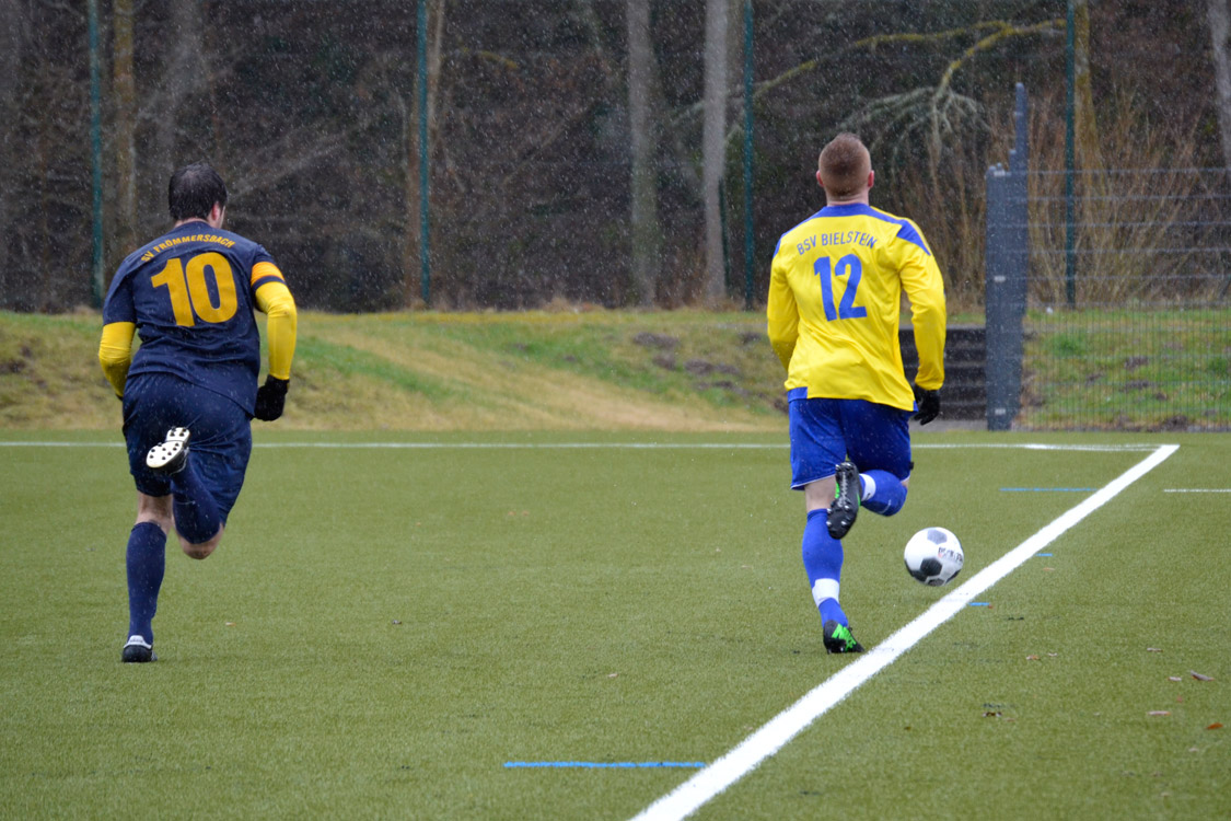 Der Start in die Partie hätte für die Bielsteiner nicht besser verlaufen können: ganze elf Minuten dauerte es, bis Patrick Weßel auf Vorarbeit von Kilian Thönes mit der ersten dicken Möglichkeit für unsere Zweite die Führung erzielen konnte. Die Freude darüber währte jedoch nicht lang: knapp zwanzig Minuten später waren es die Gäste, die nach einigen vergebenen Chancen durch einen platzierten Schuss egalisieren konnten. Das 1:1 bedeutete zugleich den Halbzeitstand.