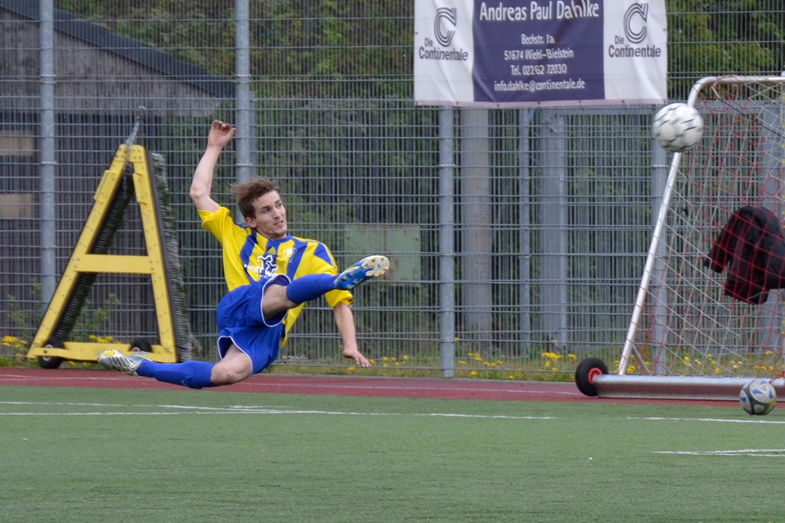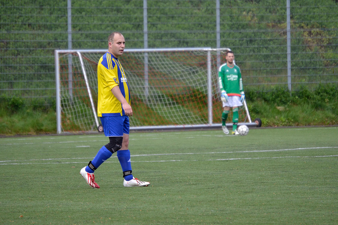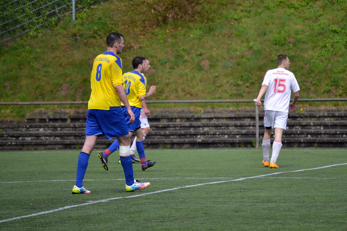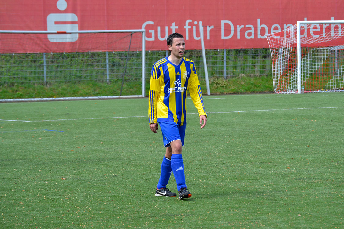 Hochmotiviert und mit einer auf einigen Positionen veränderten Startformation im Vergleich zum vorherigen Spiel ging es für unsere Zweite in das Derby gegen Drabenderhöhe. Dabei strahlte die Mannschaft nach einer längeren Serie ohne Niederlagen viel Selbstvertrauen aus und startete gut in die Partie. Die Jungs waren sehr präsent und konnten den Großteil der Zweikämpfe für sich entscheiden. Dazu agierte man in der Offensive brandgefährlich. So auch in der 14. Minute: Nach einem schnell ausgeführten Einwurf setzte sich Martin Hense erst wunderbar gegen zwei Gegenspieler durch, ehe er schließlich seinen Bruder Markus in Szene setzen konnte. Dieser vollendete den schönen Angriff mit seinem schwächeren rechten Fuß platziert ins linke Eck. Die Zweite war nun richtig heiß und machte weiter Druck: Nach einer Ecke in der 32. Minute konnte der Ball von den Gastgebern zunächst noch abgewehrt werden. Der Ball landete jedoch vor den Füßen von Sven Wagener, der das Gerät auf dem durch den zwischenzeitlich einsetzenden Regen gut gewässerten Platz ins linke untere Eck versenken konnten. Dass ein Bielsteiner Akteur dabei laut Drabenderhöhe-Trainer Thorsten Länger im Abseits gestanden haben soll, konnte der Schiedsrichter nicht bestätigen und gab den Treffer – nicht die letzte knifflige Entscheidung des Unparteiischen am heutigen Tag. Abseitsentscheidung hin oder her – der BSV Bielstein war nun klar die bessere Mannschaft. Immer wieder setzte man die Außen und den zum ersten Mal in vorderster Front agierenden Marcus Findeisen gut ein. So kamen die Bielsteiner nur drei Minuten später zu ihrem nächsten Treffer: nachdem sich Marcus Findeisen im Zweikampf gegen seine Gegenspieler behaupten und den Ball in den Lauf von Sven Wagener passen konnte, hatte dieser freie Bahn und ließ sich seine zweite Chance nicht nehmen – das 3:0. Noch im Torjubel ging die Partie dann weiter. Mit dem unmittelbaren Angriff nach dem Wiederanstoß gelang dem BV 09 der Anschlusstreffer durch Dennis Jaschok. Das ärgerte einige Bielsteiner Akteure, da die Zentrale in dieser Situation zu passiv agierte und keinen Zugriff auf das schnelle Umschaltspiel der Drabenderhöher bekam. Mit dem Spielstand von 1:3 ging es schließlich in die Pause.