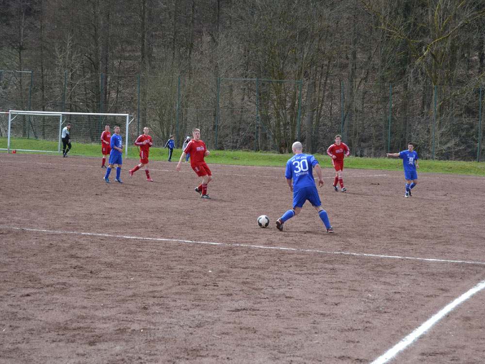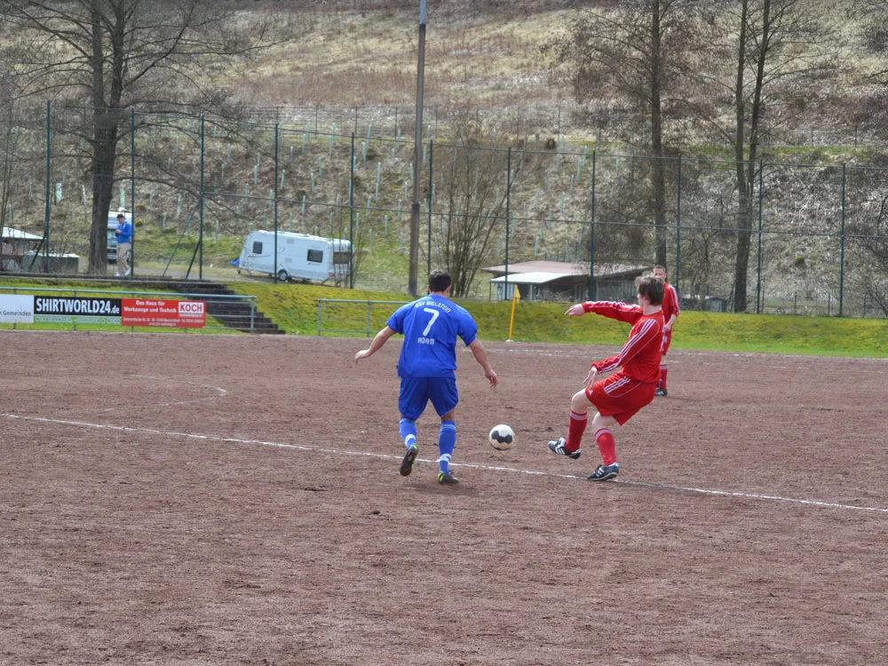 Es hätte kaum besser losgehen können: Nach wenigen Minuten des Abtastens traute sich unsere Zweite schnell mehr zu und konnte durch ein wunderschönes Tor von Axel Leopold in Führung gehen. Wahrscheinlich hätte sich die Mannschaft in einen wahrhaften Rausch gespielt, wenn sich der Torwart der Wallerhausener Gäste nicht bald schwer verletzt hätte. So pausierte man rund 20 Minuten und kam dadurch ein bisschen aus dem Tritt. Trotzalledem traf man noch vor der Halbzeit zu einer beruhigenden 2:0 Pausenführung: Unruheherd Axel hatte sich am Sechzehnereck gut durchgesetzt und eine scharfe Hereingabe auf Felix Voss hereingebracht. Dieser musste schließlich nur noch einschieben.